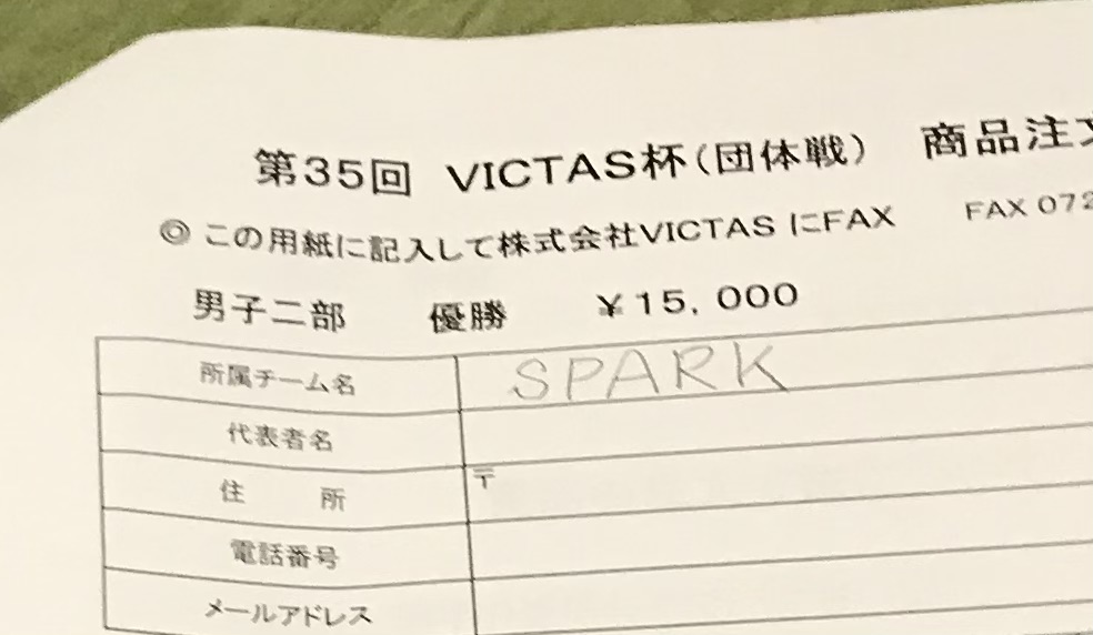 優勝賞品はVICTASの商品15000円分!カタログから選んでFAXしてくださいとのこと!